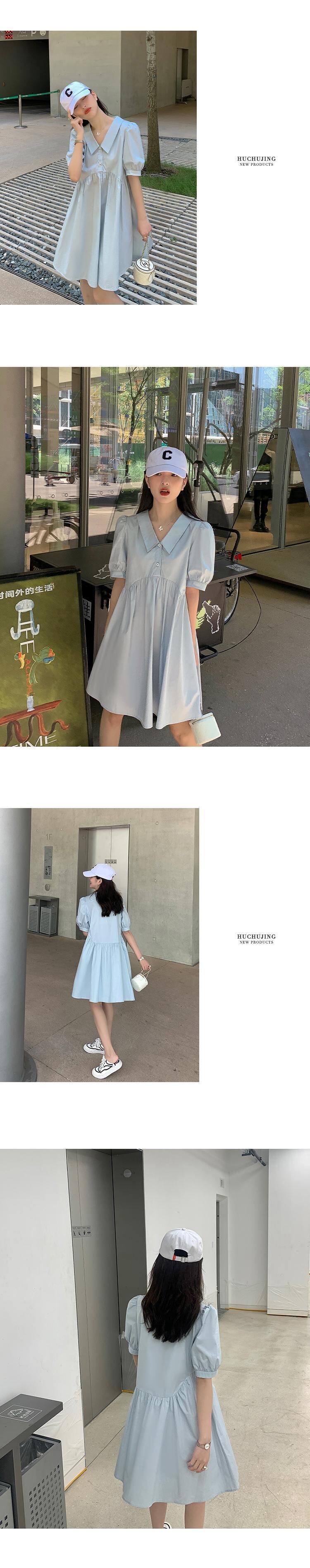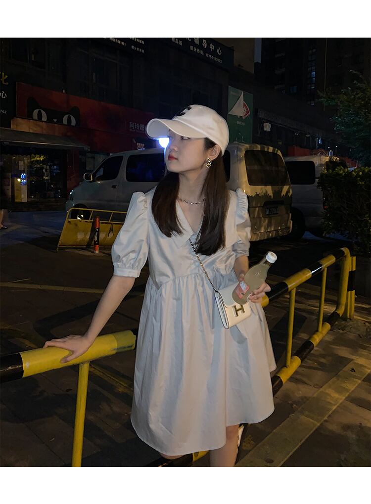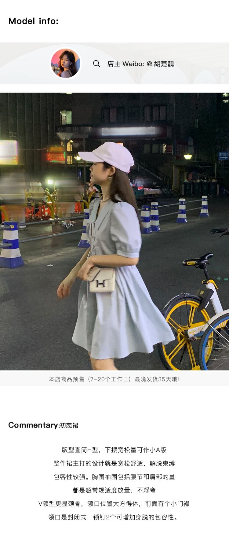 ドレス サマースリーブVネックブルー薄手スカート レディース 夏物 HUCHUJING37020034384
