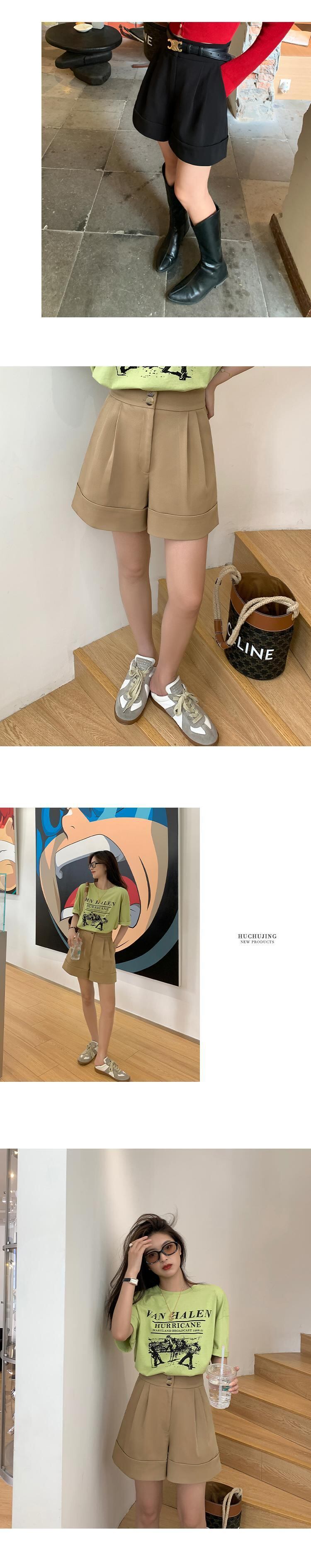 ブラックAラインハイウェストショーツ サマー薄手パンツ レディース 夏物 ブルマー HUCHUJING17017639813