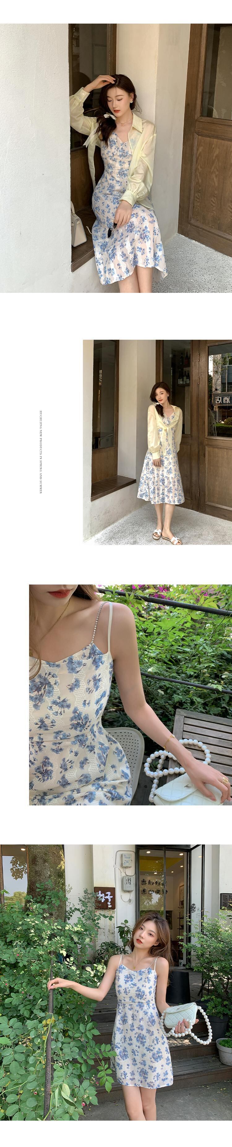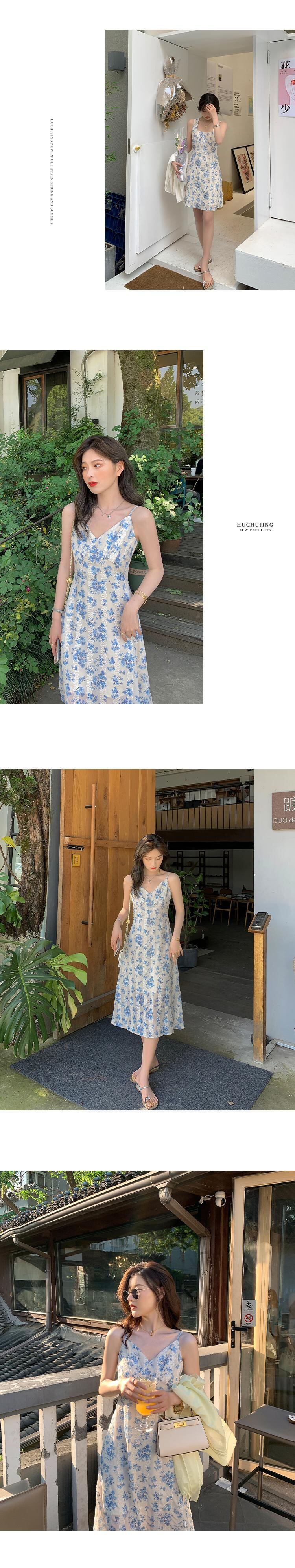 フローラルシフォンドレス サマーロングVネックスカート レッド 刺繍 夏物 花柄 HUCHUJING75013324870