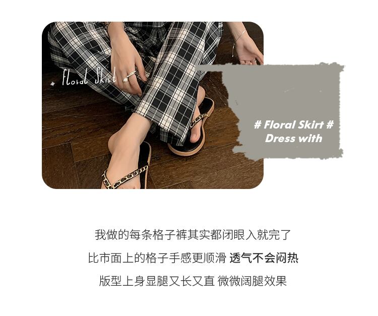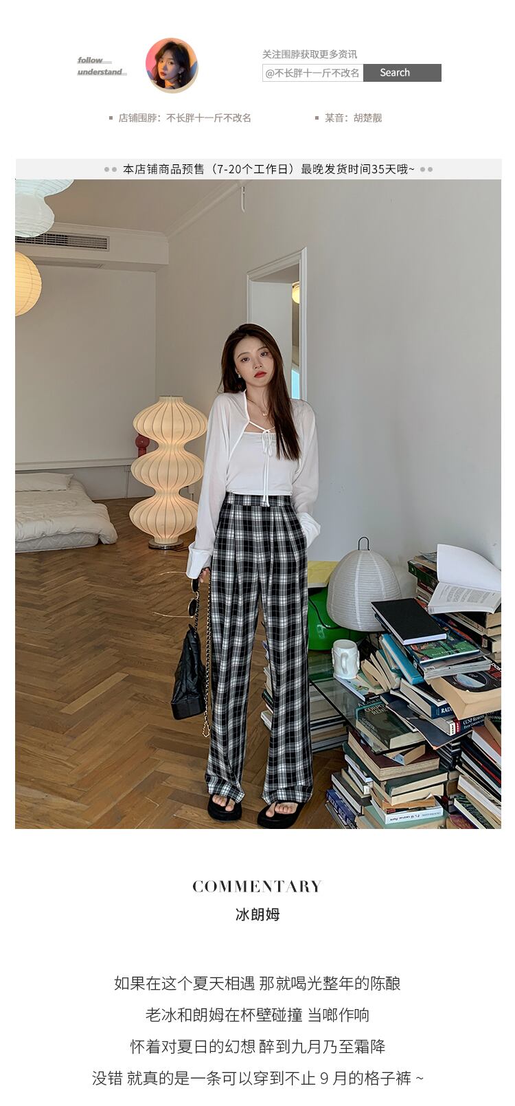 ブラックホワイト格子柄パンツ サマー薄手ルーズハイウェストレディース 夏物 HUCHUJING81528515583
