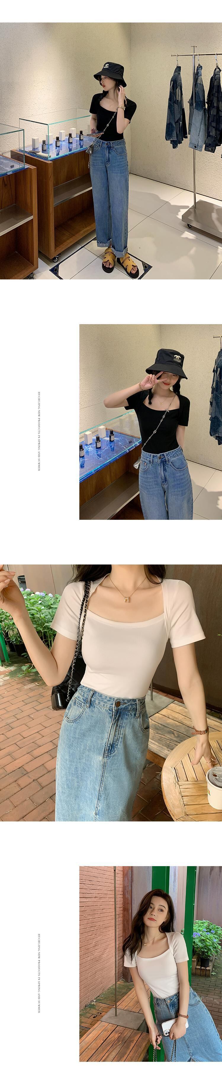 ハートサマースリム半袖スリーブTシャツ トップス ショート ハーフスリーブ 夏物 HUCHUJING61939076140