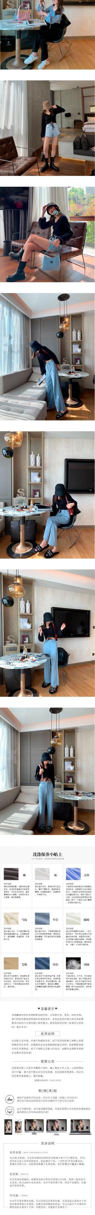 スプリングサマーショートギャザーVネックブラックTシャツ レディース ロング 春物 夏物 HUCHUJING58829971891