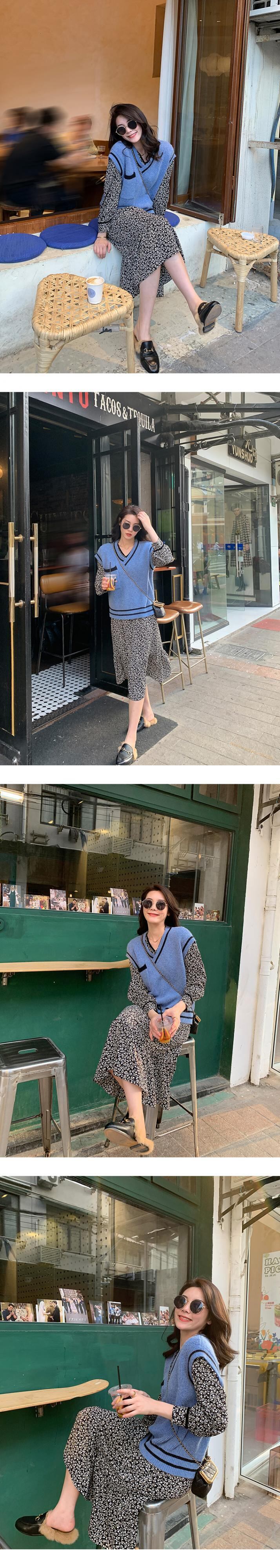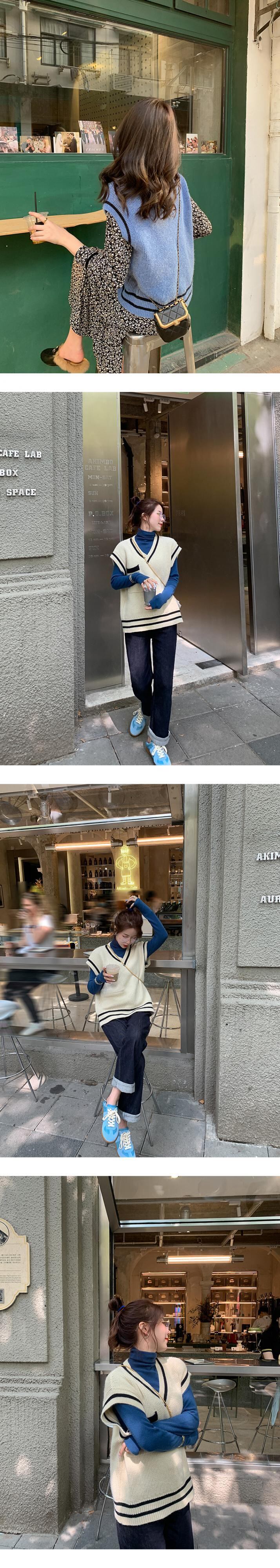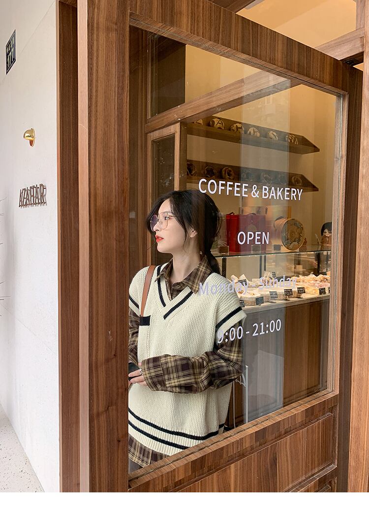 オータムウィンタースタイルルーズVネックベージュニット 秋物 冬物 HUCHUJING72679586191