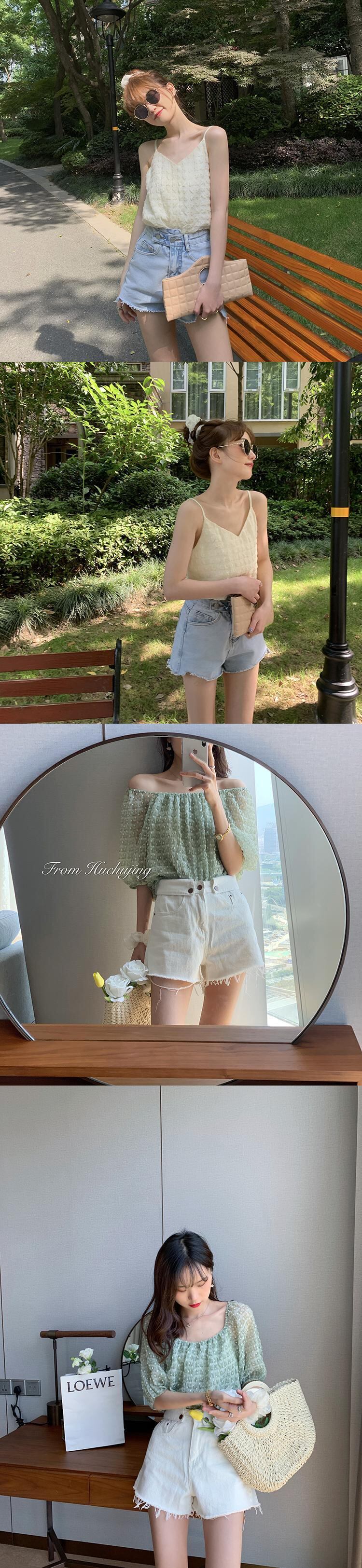 グリーンシフォン薄手トップス サマーレディース 大人ガーリー スウィート キュート カジュアル 夏物 HUCHUJING54155305538