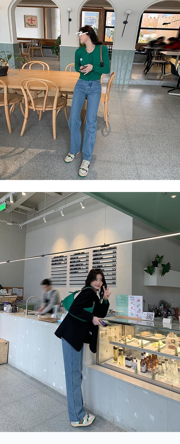 スタンダードジーンズ ハイウェスト薄手パンツ レトロ HUCHUJING55258763445