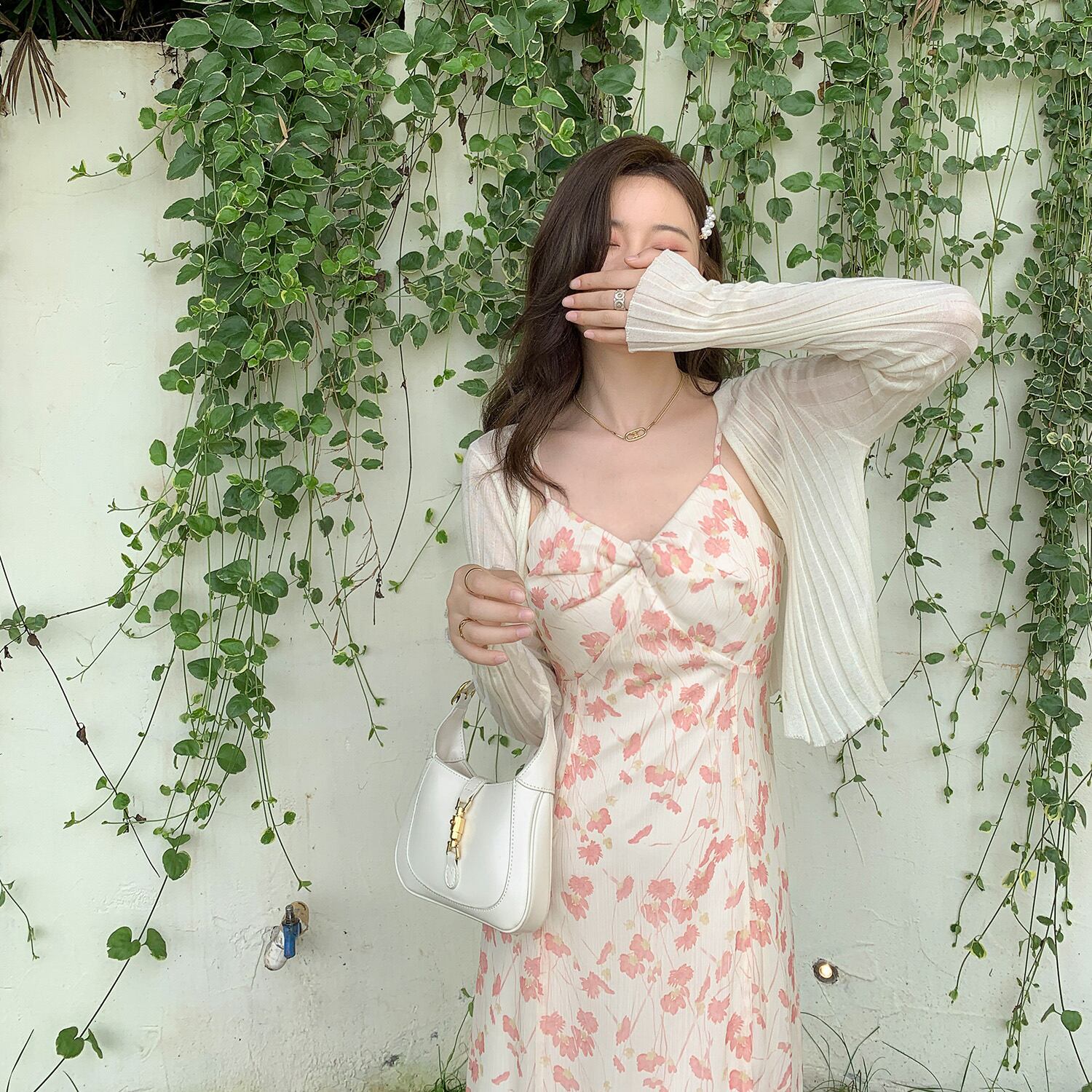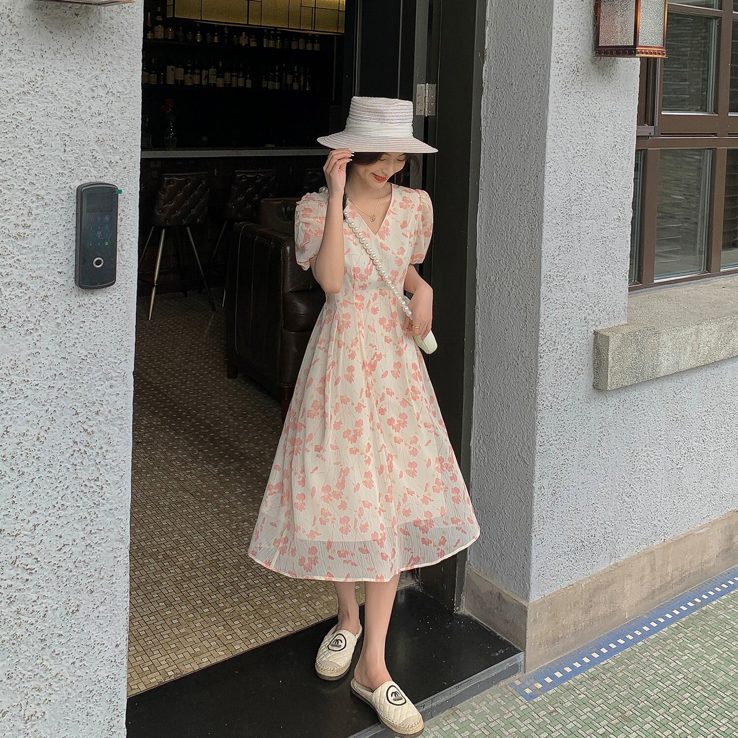フローラルドレス サマーシフォンロングスカート レディース ピンク 夏物 花柄 HUCHUJING50439803097