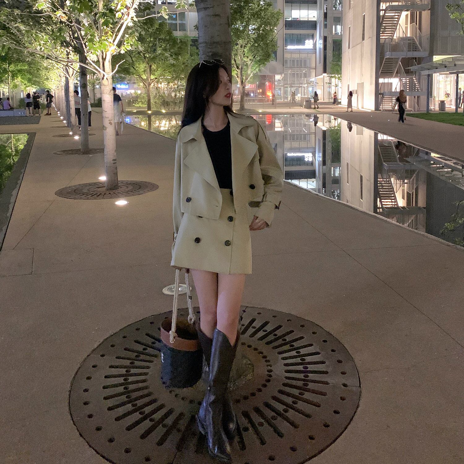 スタイルカーキショートジャケット スプリングオータムスカート 春物 秋物 HUCHUJING24539056976