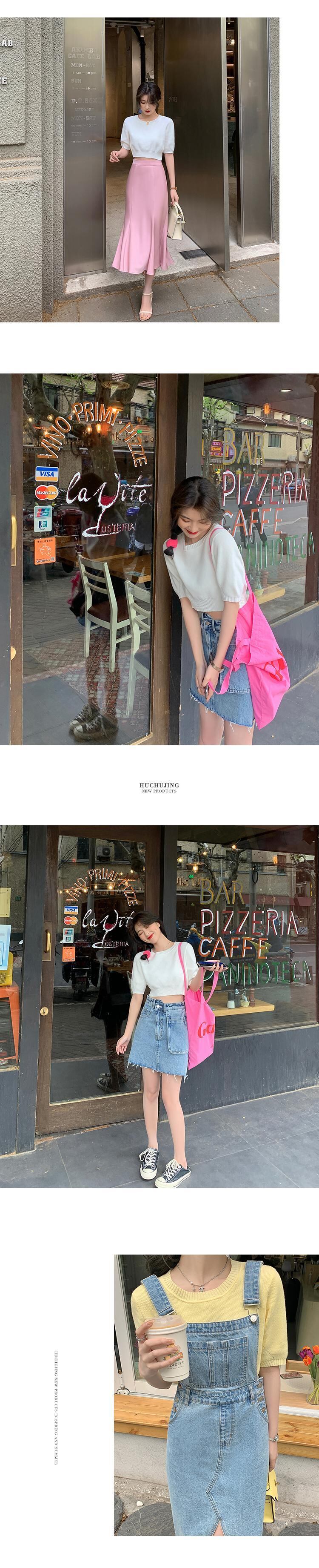 ショート薄手サマールーズラウンドネックトップス 大人ガーリー スウィート キュート カジュアル 夏物 Oネック HUCHUJING13600712453