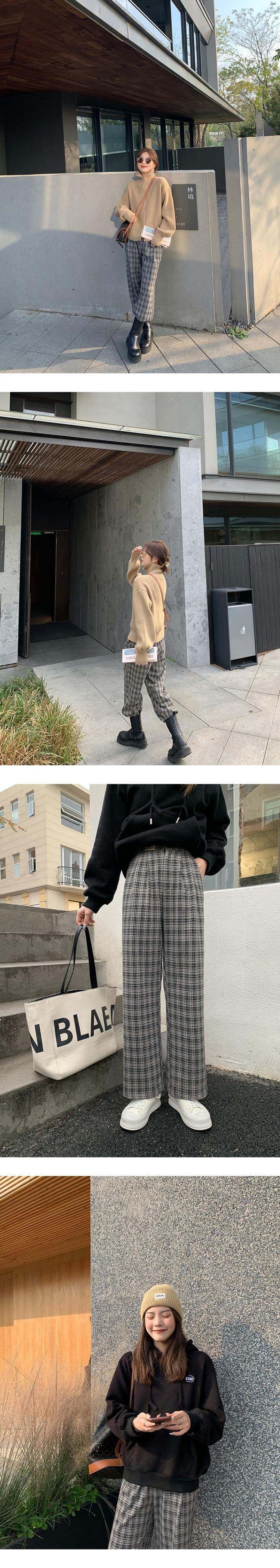 格子柄パンツ 薄手ルーズ HUCHUJING92086843821
