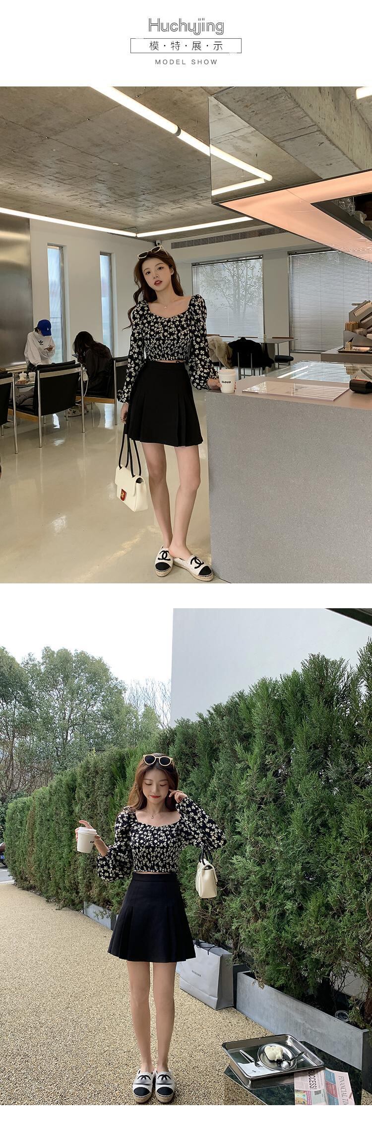 ブラックスカート Aラインハイウェストウェストプリーツレディース 大人ガーリー スウィート キュート カジュアル HUCHUJING53618686510