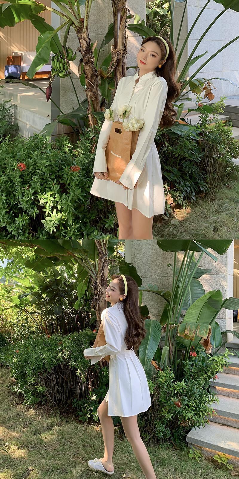 ホワイトシャツ ドレス ウェストスリムスカート ストリート HUCHUJING32953772100
