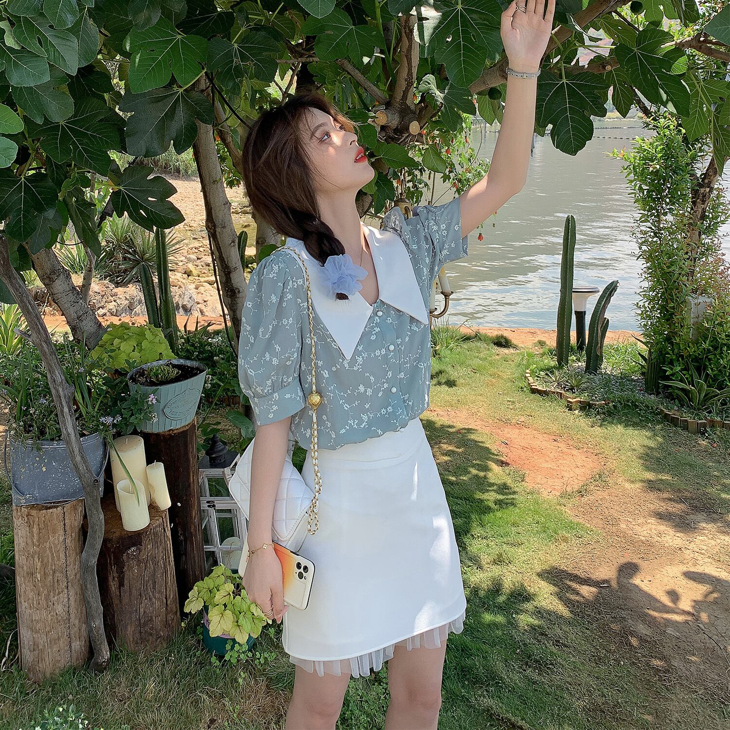 サマースタイルフローラルシフォンシャツ トップス レディース 夏物 花柄 HUCHUJING1783255073