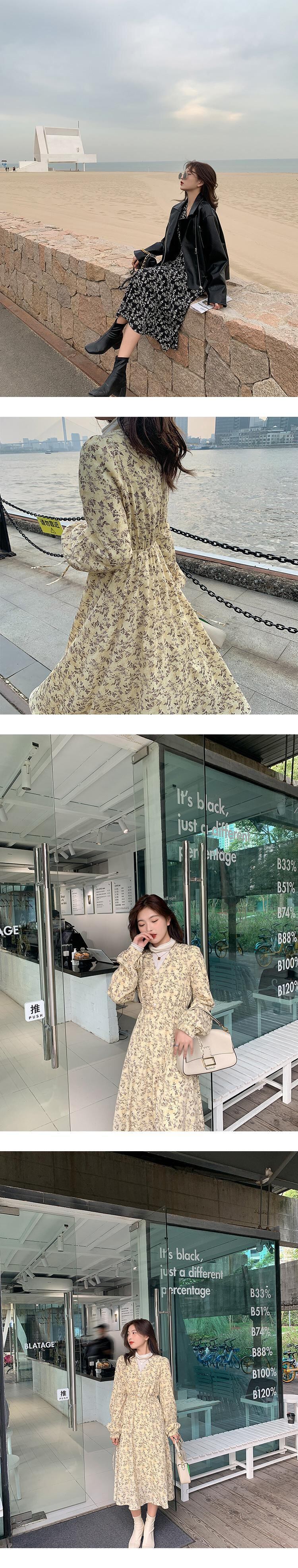 オータムフローラルドレス 秋物 花柄 スカート HUCHUJING27826735826
