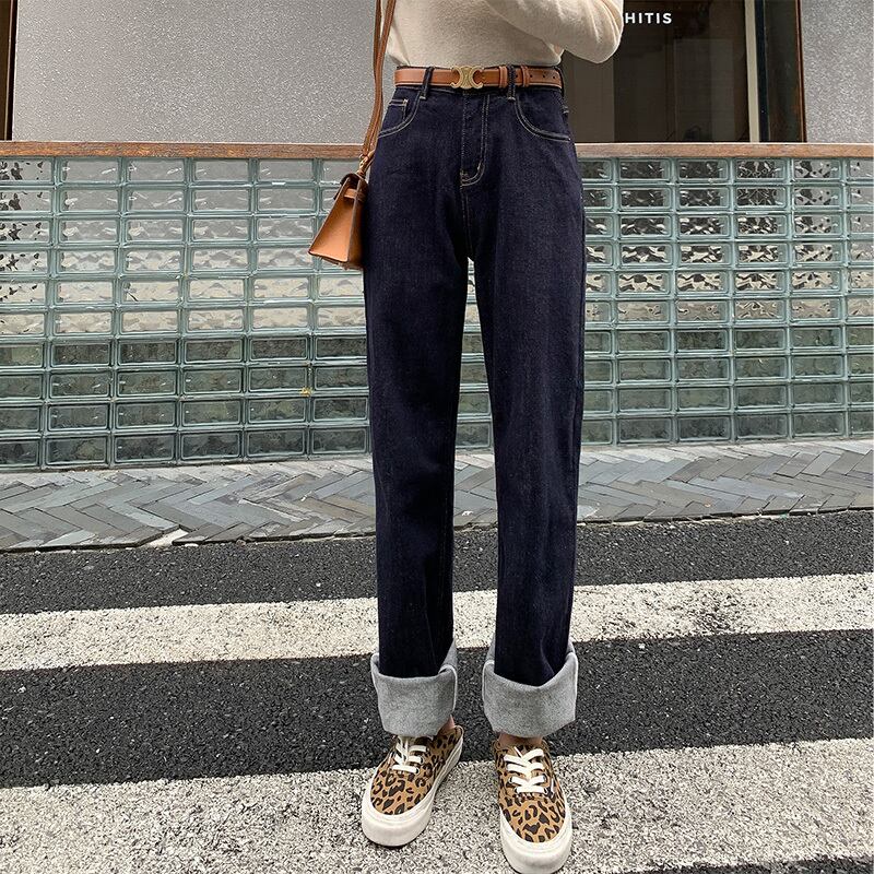 スプリングオータムスタイルダークブルージーンズ ハイウェストウェストルーズパンツ レディース 春物 秋物 HUCHUJING97889048312