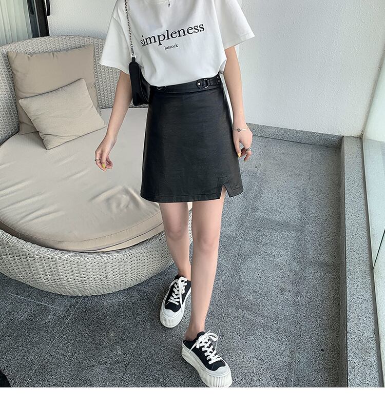 レザーショートスカート ハイウェストウェストAライン HUCHUJING74906531072