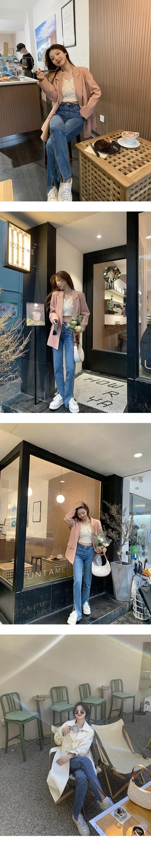 スリットジーンズ レディーススプリングルーズパンツ ハイウェスト 春物 HUCHUJING99329358896