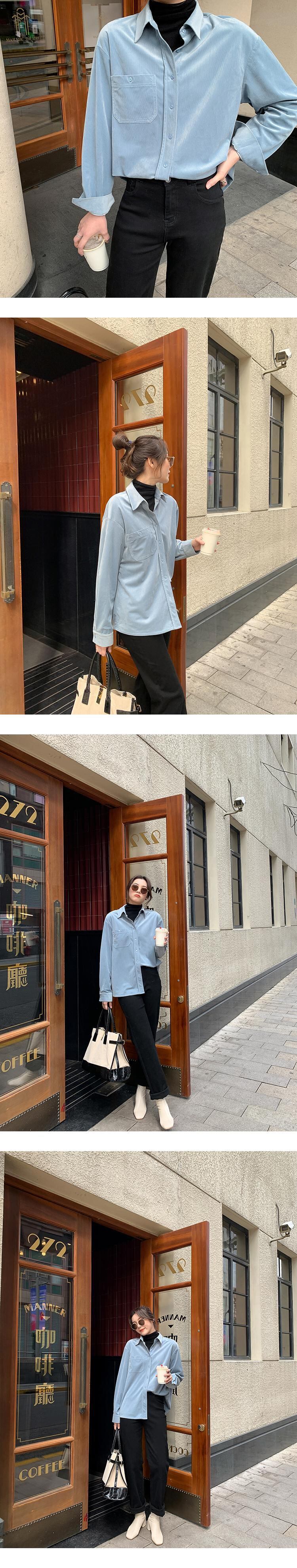 コーデュロイシャツ スタンダード ロング レトロ HUCHUJING17235974687