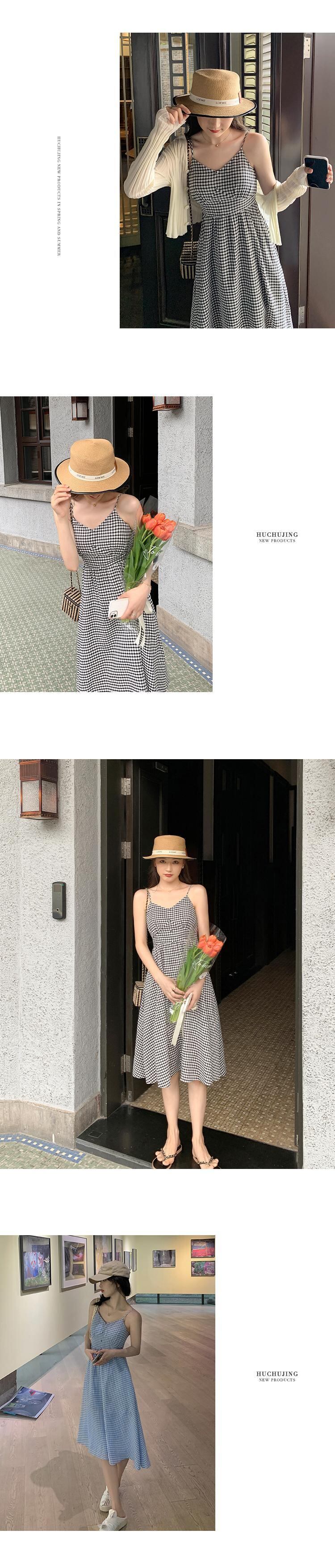 ブルー格子柄スカート サマーロングドレス レディース 夏物 HUCHUJING57518666303