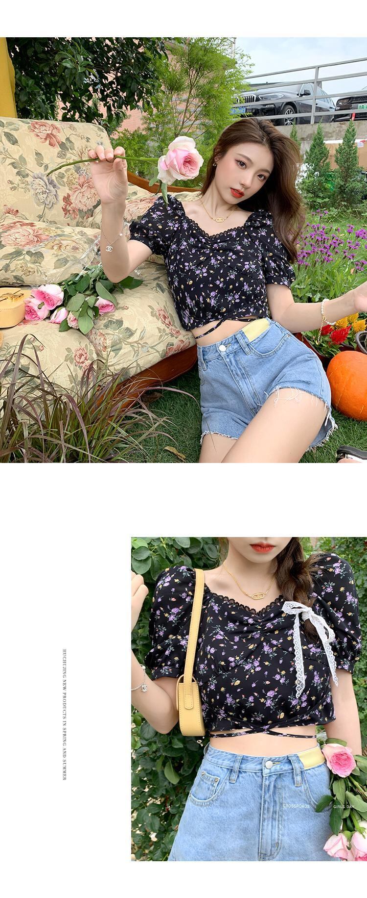 フローラルシャツ サマーVネック薄手 夏物 花柄 HUCHUJING39644424452