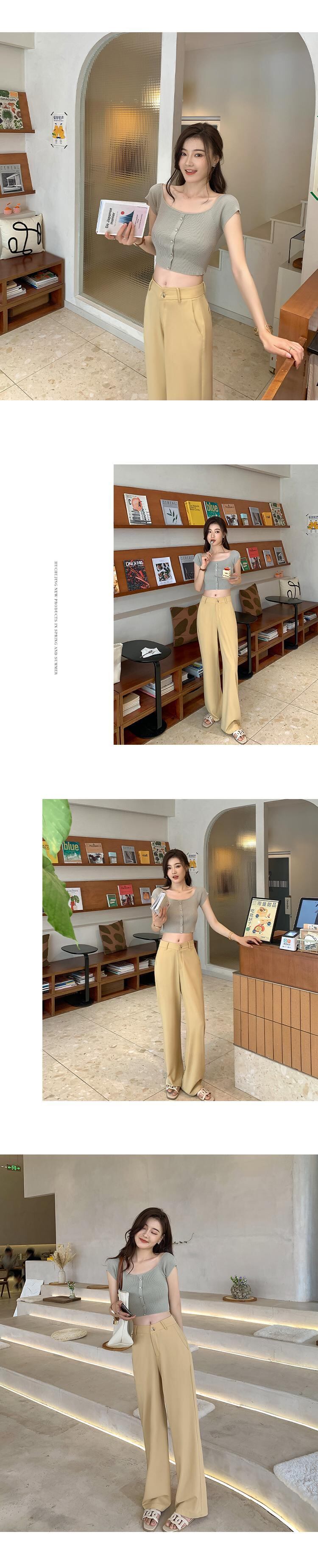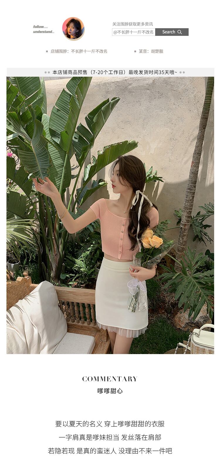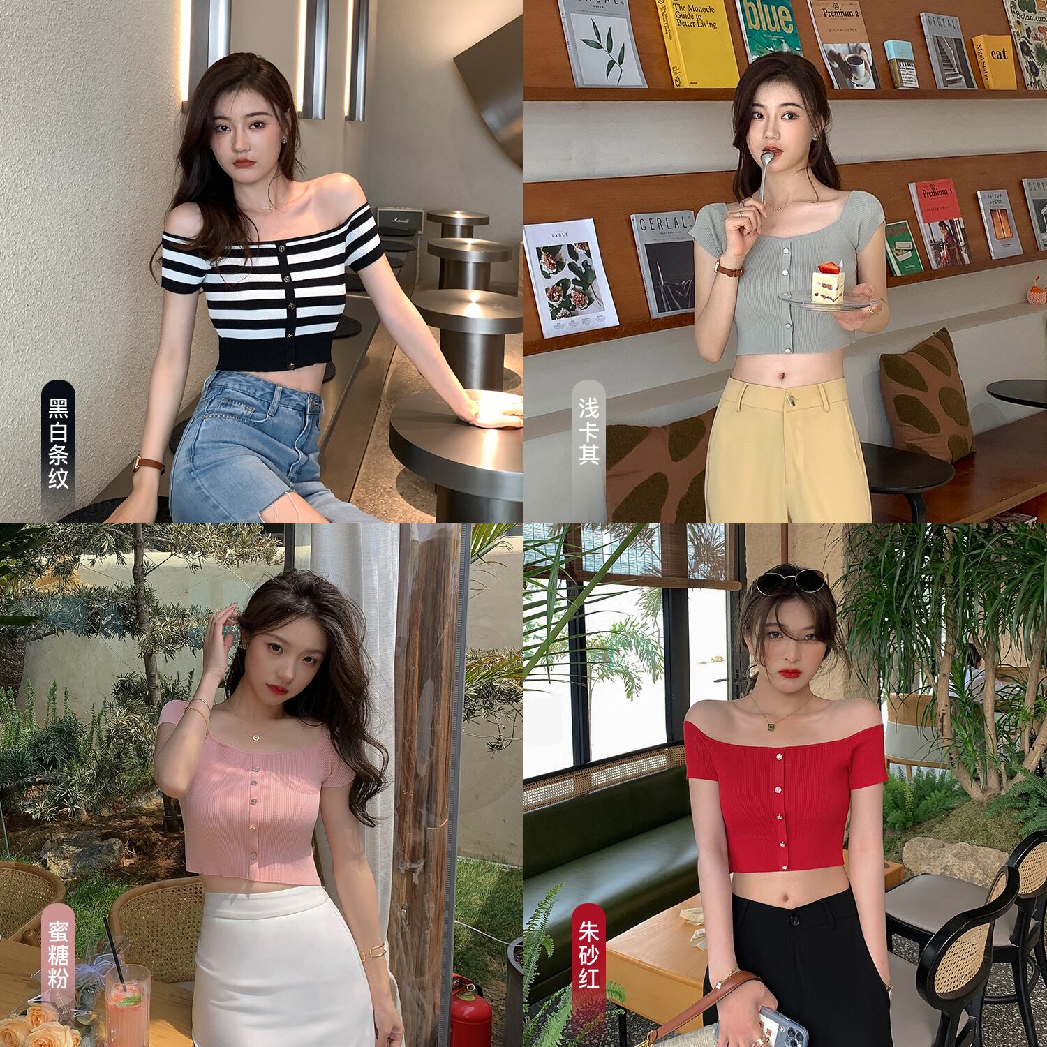 ショートストライプニットトップス レディース 大人ガーリー スウィート キュート カジュアル サマー 夏物 HUCHUJING49832933031