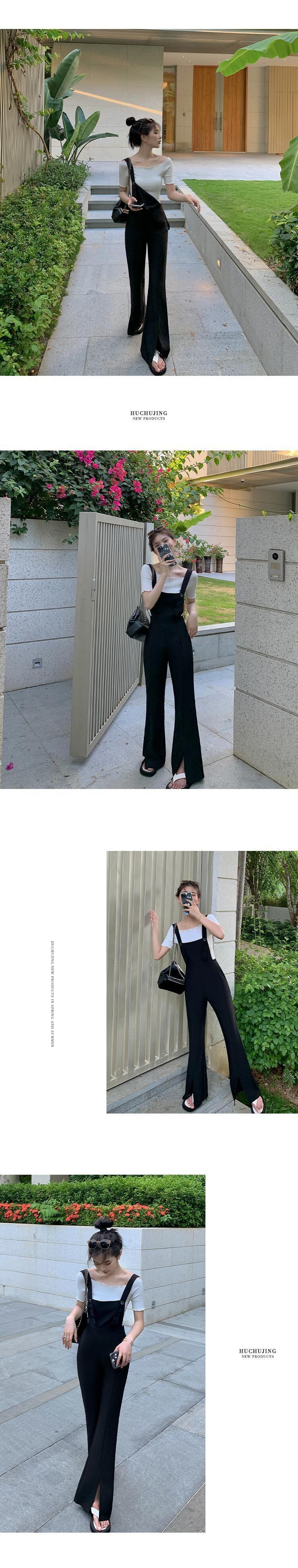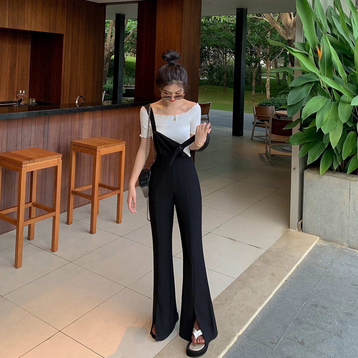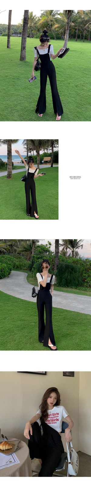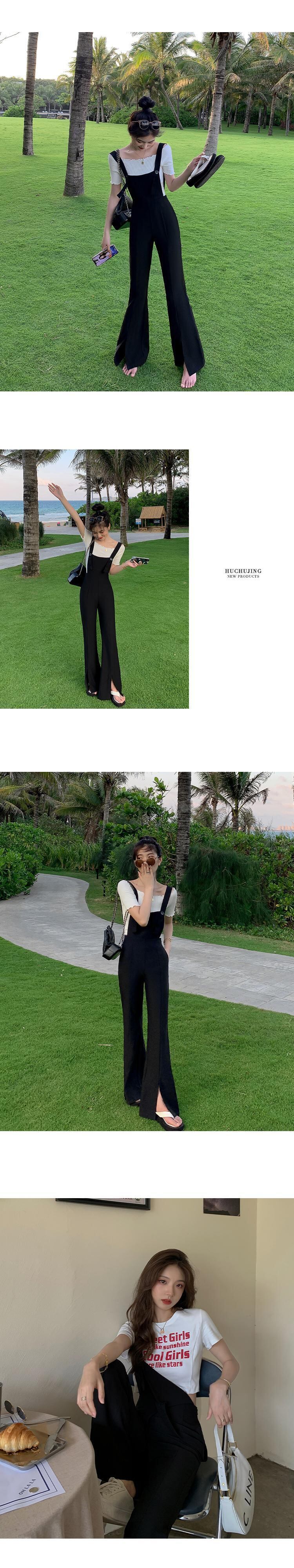 サマーレッドブラックワイドレッグオーバーオール レディース薄手 夏物 ワイドパンツ HUCHUJING32105076446