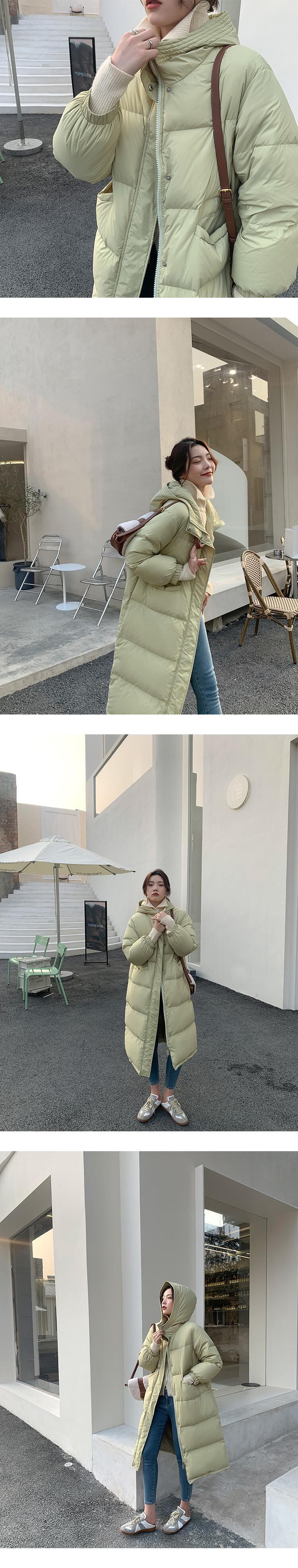 ホワイトグリーンジャケット レディースウィンターフード 冬物 HUCHUJING76019600187