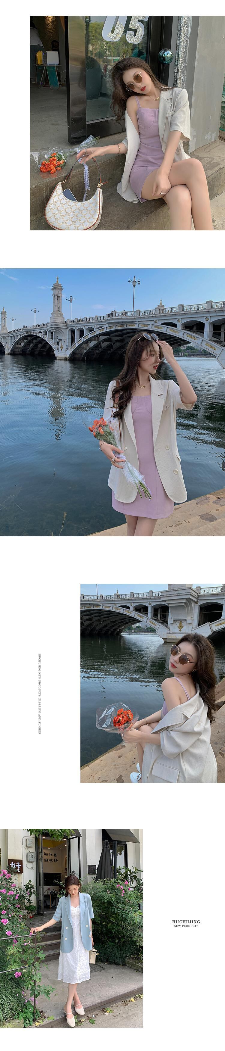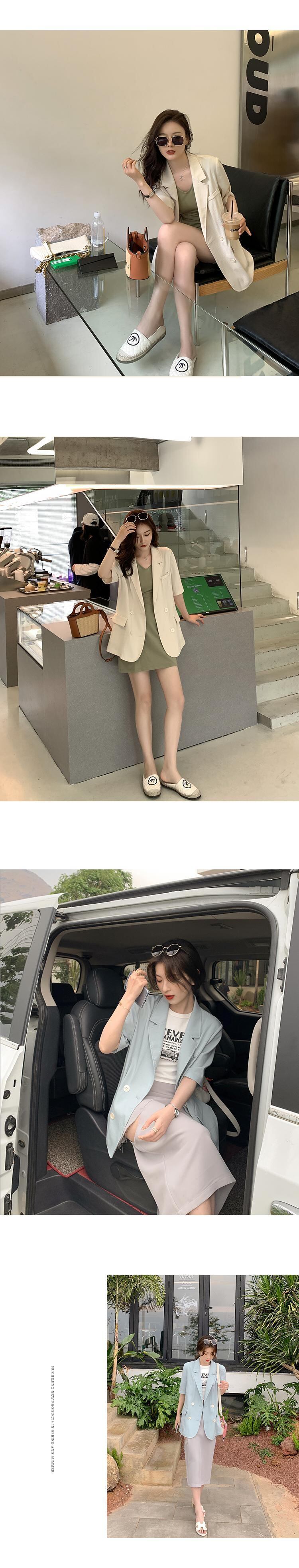 サマーカラー半袖スリーブ薄手ジャケット レディース ショート コットン ハーフスリーブ 夏物 ピュア HUCHUJING43055137164