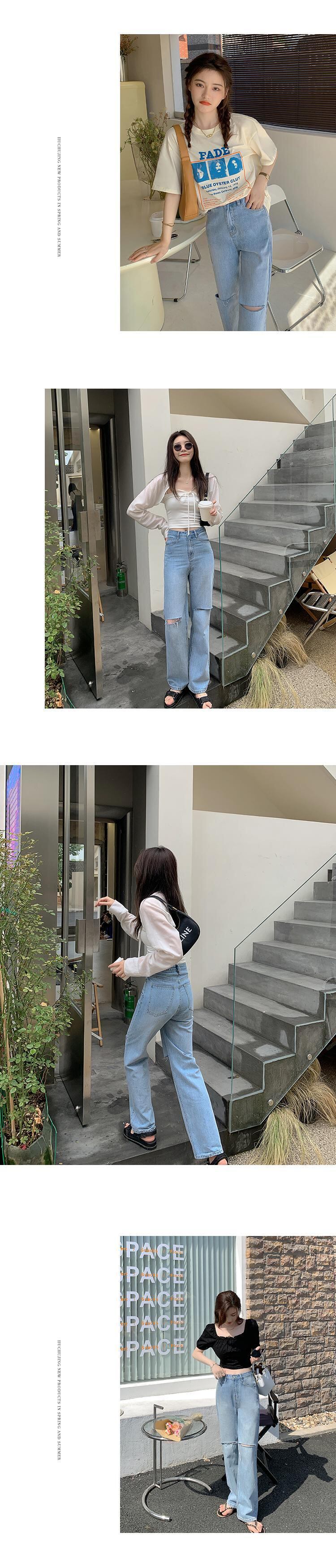 サマースタイルジーンズ ハイウェストパンツ レディース 夏物 HUCHUJING93800529438